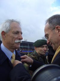Karremans ha invece sottolineato che loro non devono dimenticare il motivo per cui sono stati a Srebrenica, che non devono vantarsi delle decorazioni ricevute, ma che possono liberamente sentirsi fieri. Durante il suo discorso Karremans ha invitato i presenti ad osservare un minuto di silenzio in memoria delle vittime di Srebrenica.