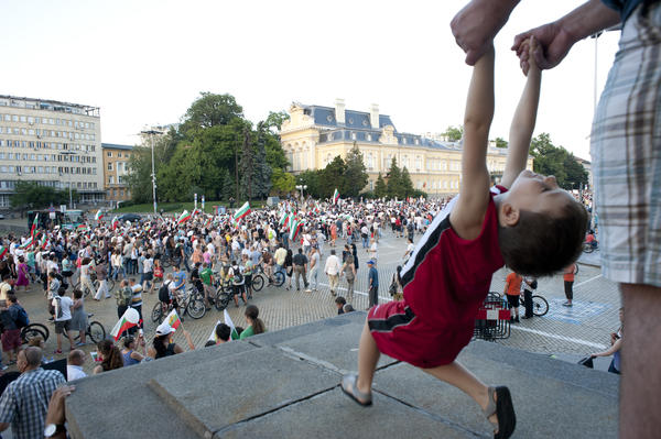 Sull’ “asse della protesta”, il viale che attraversa il centro della capitale della Bulgaria portando dalla presidenza fino al parlamento e al ponte delle Aquile, non solo bandiere, megafoni e striscioni, ma anche biciclette, famiglie al completo di bambini in carrozzina, ragazzi che cantano e bevono birra in circolo, ragazze in ciabatte e vestiti leggeri che sembrano più pronte alla spiaggia, che non alle manifestazioni di piazza.