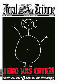 Il "Feral Tribune" ha ripubblicato la caricatura del giornale francese Charlie Hebdo, in cui Maometto piange e dice "È dura quando ti amano gli stupidi", seguita dalle parole del redattore del giornale, Philipe Val, il quale commenta le manifestazioni tenutesi nel mondo musulmano e il comportamento dell’Occidente: "Quando i paesi democratici riconoscono gli argomenti dell’estremismo nelle cose principali, sia per ricatto o per t[]e, allora è segno che per questi disegni non è rimasto molto tempo".
