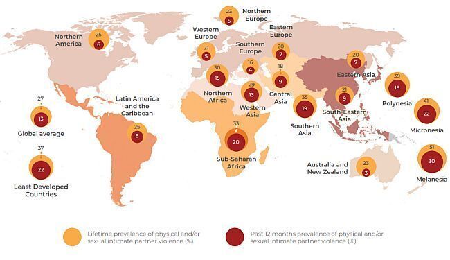 Dai dati esaurienti pubblicati dall’OMS emerge che il fenomeno della violenza sulle donne è maggiormente diffuso “nei paesi meno sviluppati” dove il 37% delle donne e delle ragazze ha vissuto questo trauma. I tassi più elevati si registrano in Oceania, nello specifico nelle regioni di Melanesia, Micronesia e Polinesia. A seguire l’Asia meridionale (35%) e l’Africa subsahariana (33%).