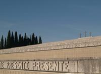 Oltre alla già citata Basovizza, un altro importante caso che abbiamo esaminato è Redipuglia. Questo luogo simboleggia la costruzione dell’identità nazionale italiana promossa dal regime fascista. L’immensa area monumentale venne costruita nel 1938 per onorare le centinaia di migliaia di caduti della Prima guerra mondiale, della sola parte italiana. Il monumento era progettato per impressionare il visitatore con la sua grandiosità e la sua architettura austera. L’idea era quella di glorificare i martiri della nazione, subito prima di intraprendere una nuova guerra per soddisfare le ambizioni imperialiste italiane. Certo Redipuglia non intendeva creare emozione per l’enorme tragedia della Prima guerra mondiale, e sicuramente non provocava compassione per i caduti nemici.