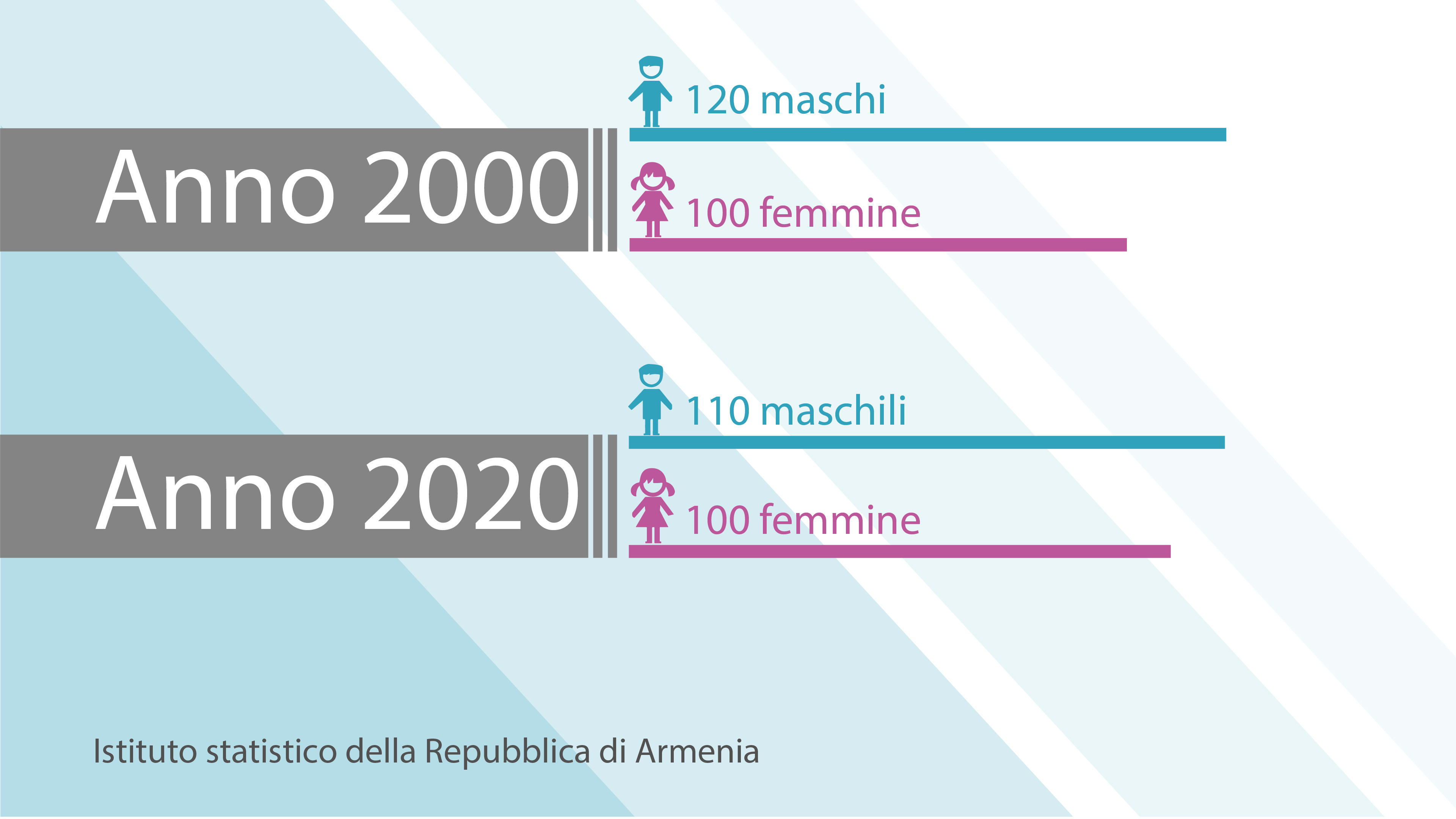 Stando ai dati diffusi dal Comitato statistico della Repubblica di Armenia, il più alto livello di disparità di genere nel paese è stato registrato nel 2000, quando il numero mensile di neonati maschi ha superato quello di femmine. Nei dieci anni successivi la tendenza è stata invertita a favore delle bambine.