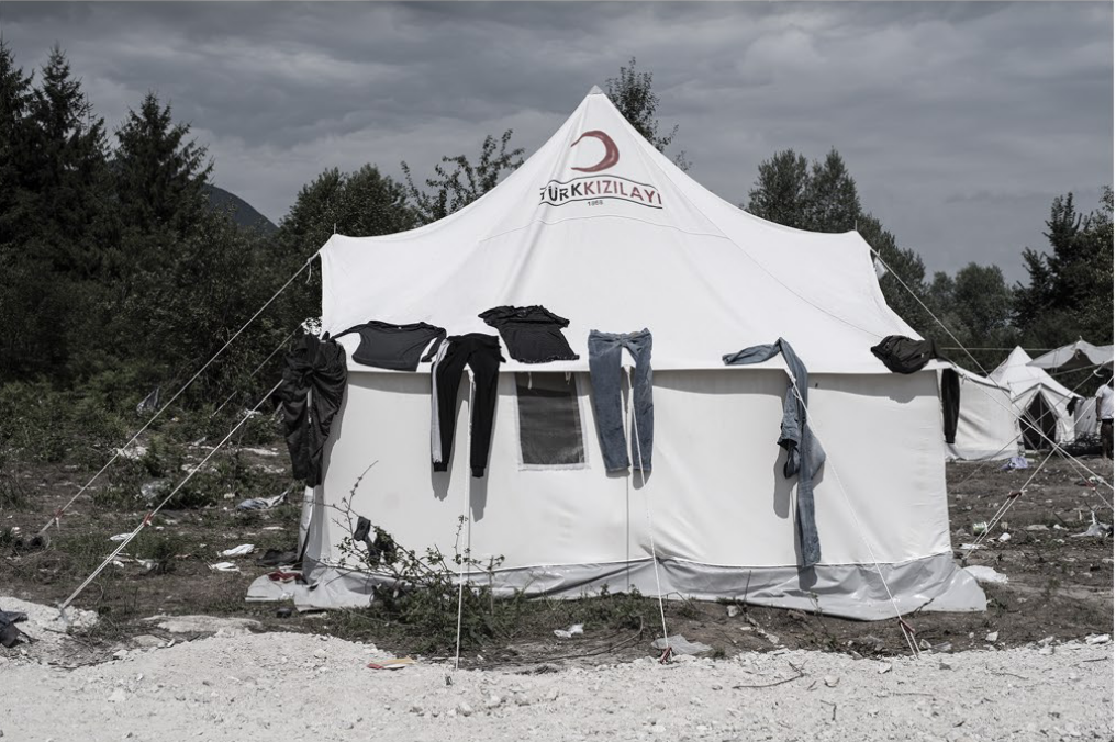 Vučjak, letteralmente «la tana del lupo»: una località sulle colline intorno a Bihać, a 5 chilometri dal centro, circondata – verso le montagne – da zone ancora minate per la guerra degli anni Novanta. Sede di una ex discarica che oggi ospita una cinquantina di tende in mezzo al nulla, tra topi, serpenti, mosche e le mine inesplose della guerra del 1992-95. Dove oggi vivono 500 persone: giovani uomini provenienti in prevalenza da Pakistan e Afghanistan. È qui che arriviamo, dopo la breve corsa in taxi. All’ingresso i controlli sono di routine: un poliziotto ci chiede di identificarci, registrando i passaporti. E il personale – disponibilissimo – della Croce Rossa ci chiede chi siamo, che cosa siamo venuti a fare. Glielo spieghiamo: non siamo stati mandati da una testata giornalistica.