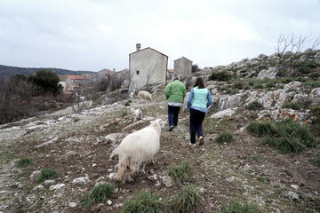 Franjo nel 2018 ha partecipato ad un bando indetto dal LAG "Kvarnerski otoci" (Local Action Group- LEADER/CLLD programme), grazie a fondi della politica di coesione Ue, per sostenere giovani agricoltori. “Ho scritto un progetto ed ho ottenuto un finanziamento che mi ha permesso di recintare con filo elettrico tre mie proprietà e di sradicare i ginepri”. Lo ha fatto per proteggere le proprie pecore dai cinghiali, specie alloctona e vera piaga nell’isola. “Purtroppo si sono riprodotti in modo incontrollato. Sono stati introdotti per essere cacciati, è un business, cacciatori dalla terraferma e dall’estero vengono qui e sono pronti a pagare migliaia di euro per un bel trofeo”. Ma, nei periodi di carenza di cibo, i cinghiali aggrediscono e si cibano degli agnelli, facendo tabula rasa anche di altra fauna locale. “È dal 2010 che noi allevatori ci siamo riuniti in un’associazione di caccia per contenere cinghiali e mufloni. Ma è una situazione difficile e spesso è chi ha guadagni nell’accompagnare cacciatori che vengono da fuori ad essere responsabile per la diffusione dei cinghiali. È un’arma a doppio taglio, la politica ha portato i cinghiali sull’isola e solo la politica può trovare una soluzione”.