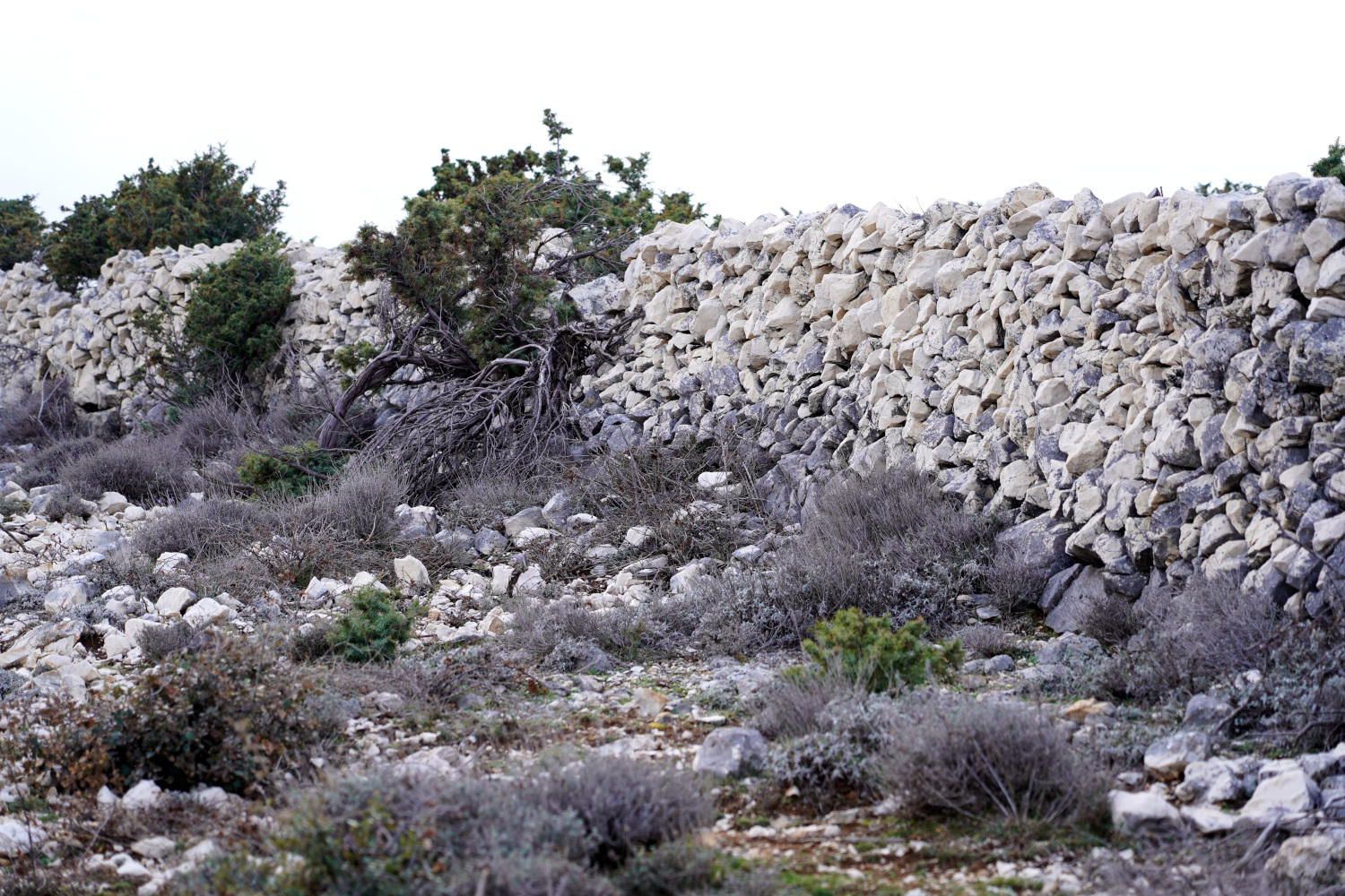 I colori sono bruni, per la stagione e la poca pioggia. Nei cieli di questa parte dell’isola non i gabbiani ma i grifoni. I muri a secco contengono delle esplosioni di ginepro e rosmarino.