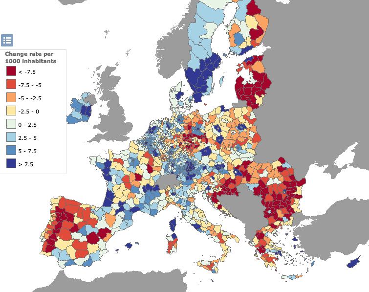 Nell’intero sud-est Europa i dati sullo spopolamento sono drammatici e impongono urgenti riflessioni. Nel resto d’Europa la tendenza è meno negativa, ma resta allarmante