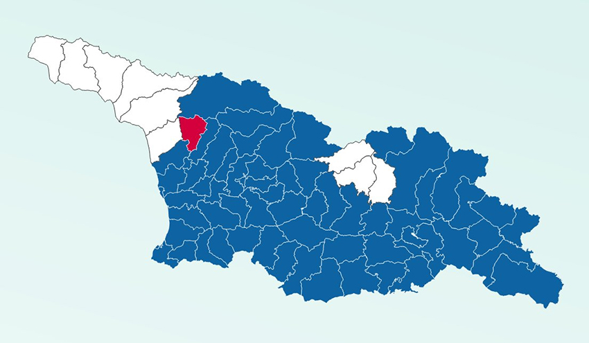 Per quanto riguarda i sindaci, è una mappa nazionale che si tinge di blu, con un solo puntino rosso: ovunque prevale Sogno Georgiano, a parte a Tsalenjikha dove ha vinto il candidato dei Nazionali.