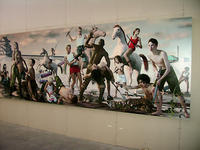Il collettivo moscovita AES+F con i suoi murales si rifà apertamente alla tradizione del realismo socialista. "Penso che le loro opere siano morali, urgenti, belle e scioccanti… abbiamo molto bisogno di questo genere di opere" ha raccontato Hanru.