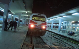 Nella prima carrozza del treno Atene-Salonicco, i passeggeri bevono caffè [...]