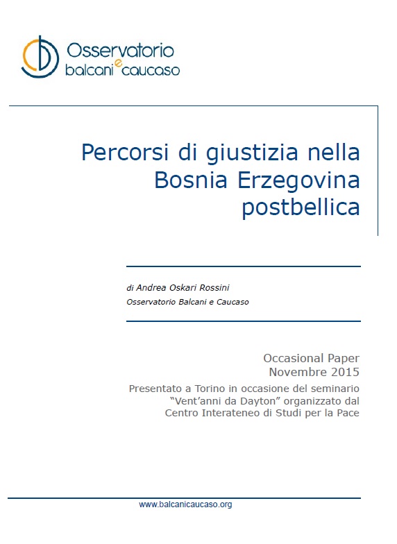Da oltre vent’anni il Tribunale Penale Internazionale per l’ex Jugoslavia (ICTY) e le Corti locali perseguono i responsabili dei crimini di guerra commessi in Bosnia Erzegovina nel periodo 1992-1995. Fino a quando dureranno i processi? Quando le vittime, i familiari, le società sconvolte dalle violenze dei nazionalisti potranno ritenersi soddisfatte per il lavoro dei giudici? Occasional Paper presentato a Torino in occasione del seminario “Vent’anni da Dayton” organizzato dal Centro Interateneo di Studi per la Pace
