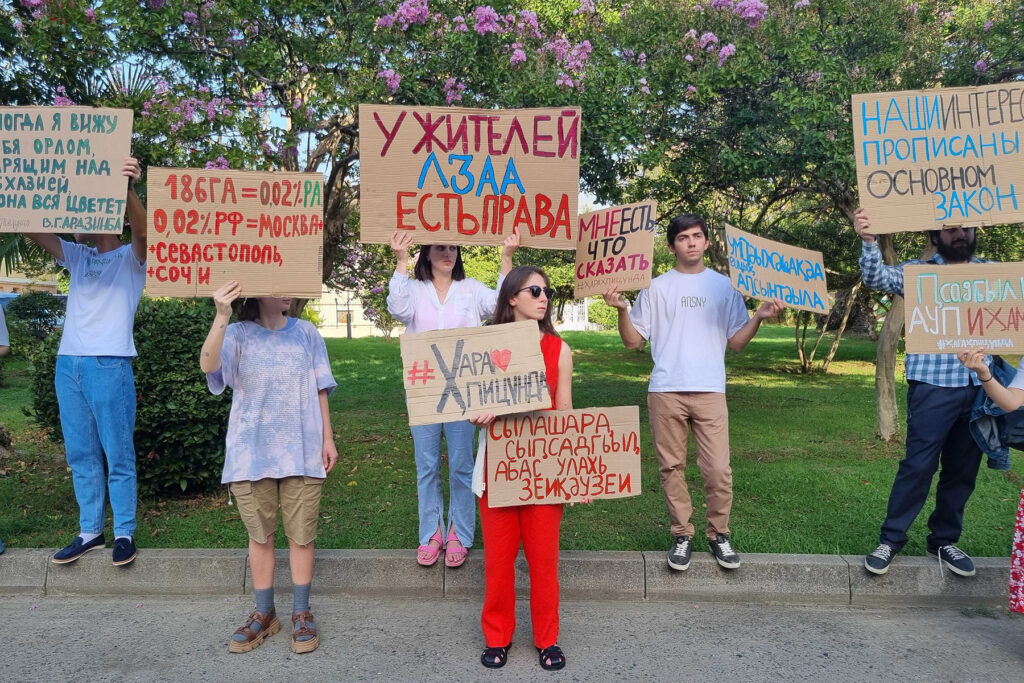 Il 17 settembre, il movimento Hara H-Pitsunda (‘Nostra Pitsunda’) è per le strade di Sukhumi per protestare contro il passaggio di proprietà di una dacia di stato d’epoca sovietica alla Russia. Il corteo è avvenuto in silenzio, ma le idee che lo spingevano hanno avuto una forte risonanza, visto che centinaia di giovani hanno sfilato per il centro della capitale abkhaza, tenendo in mano cartelloni di protesta contro la cessione della dacia.
