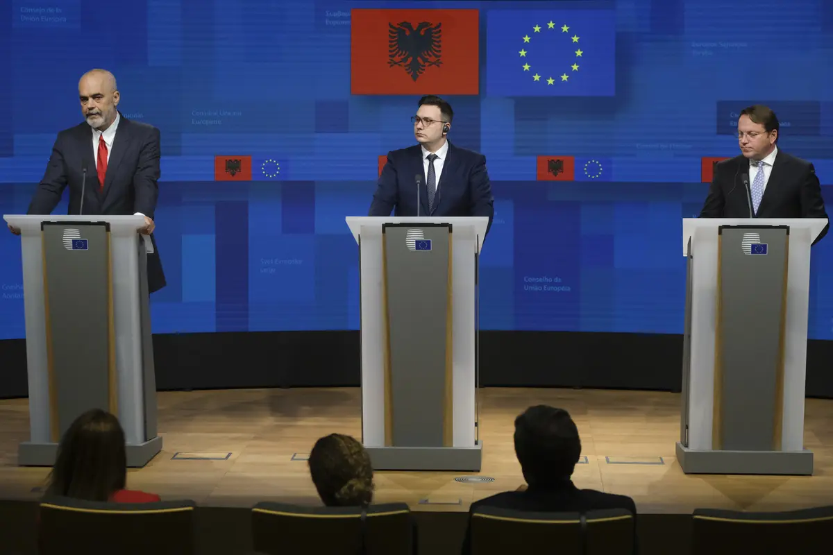 Edi Rama (Primo Ministro dell'Albania), Jan Lipavský (Ministro degli Affari Esteri, Repubblica Ceca), Olivér Várhelyi (Commissario europeo per il Vicinato e l'allargamento, Commissione europea) - Foto © Unione europea