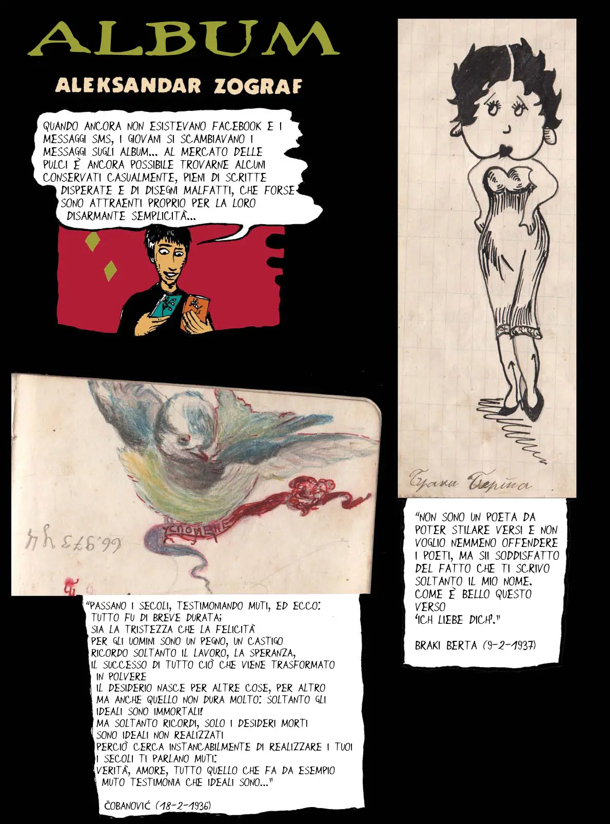 Aleksandar Zograf, pseudonimo di Saša Rakezić, è nato nel 1963 a Pančevo (Vojvodina, Serbia). Giornalista musicale e disegnatore di fumetti, è autore di numerosi lavori pubblicati in tutto il mondo. Tra questi: Life Under Sanctions, Psychonaut, Dream Watcher e Bulletins from Serbia. In Italia si afferma con Lettere dalla Serbia, cronaca quotidiana dei bombardamenti della NATO (PuntoZero, 1999), Psiconauta (1999) e Saluti dalla Serbia (2001). Per la casa editrice Black Velvet pubblica successivamente (C’è) Vita nei Balcani?, seguito di Saluti dalla Serbia e i volumi Appunti – Un anno con Aleksandar Zograf (volumi 1 e 2), Abramacabra (su testi di Francesca Faruolo ed Emanuele del Medico).
