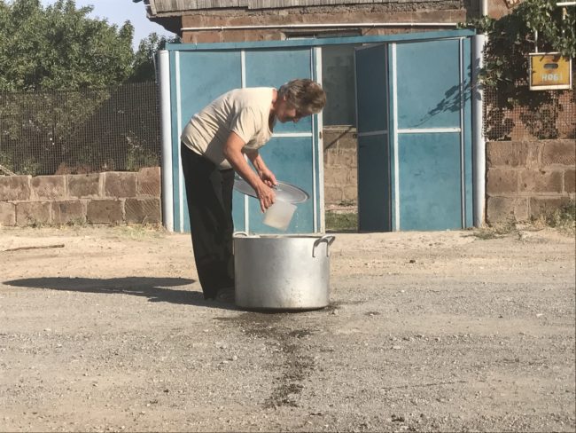 "Una bolletta dell’acqua viene 180 Dram ($0.40); in pratica, ci annaffio solamente il giardino. Ma sono grata che almeno questa preoccupazione sia alleviata. Circa cinque anni fa l’acqua che chiamano ‘artesiana’ era molto sporca e, quando aprivo il rubinetto, uscivano fango e vermi. Ora scorre acqua pulita. Non starò qui a ripetervi mille volte che non è potabile. Ma la cosa dovrebbe essere ribadita mille volte cosicché almeno i nostri pronipoti possano avere acqua potabile nelle loro case", afferma Yelena.