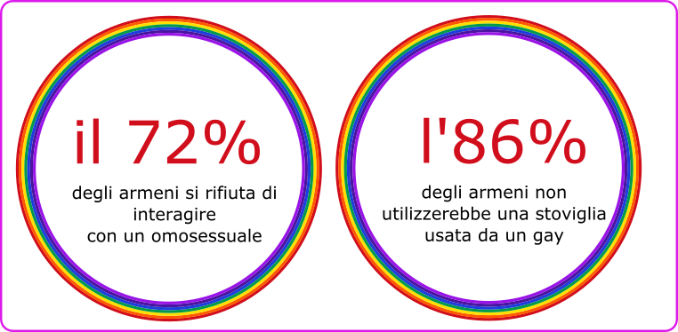 L’opinione pubblica armena è largamente ostile al discorso di genere, al riconoscimento dell’omosessualità come realtà presente nella comunità armena, e al riconoscimento dei diritti per gli omosessuali e per tutti coloro che esprimono orientamenti non prettamente eterosessuali. Lo studio più completo su cosa pensino gli armeni in merito è del 2011, un accurato sondaggio realizzato dall’Alto commissariato delle Nazioni Unite per i diritti umani, che lascia poco spazio ai dubbi. Secondo la maggioranza degli intervistati l’omosessualità è una malattia, e secondo il quasi 10% potrebbe addirittura essere indotta dall’uso di internet. Il 72% dichiara che rifiuterebbe di interagire con un omosessuale, una volta scoperto il suo orientamento o anche solo utilizzare una stoviglia usata da un gay (86%).