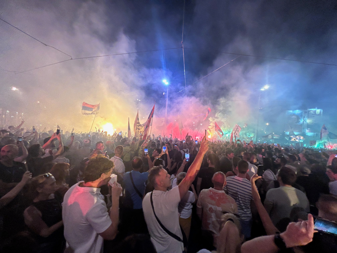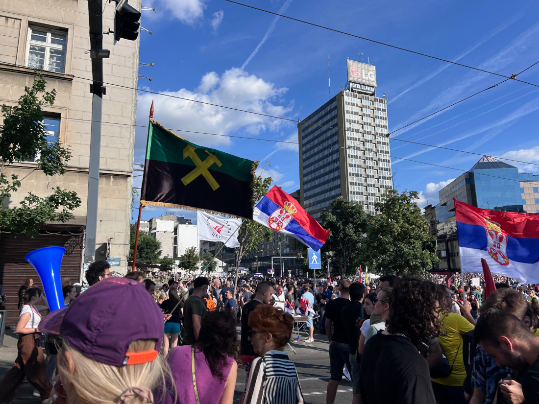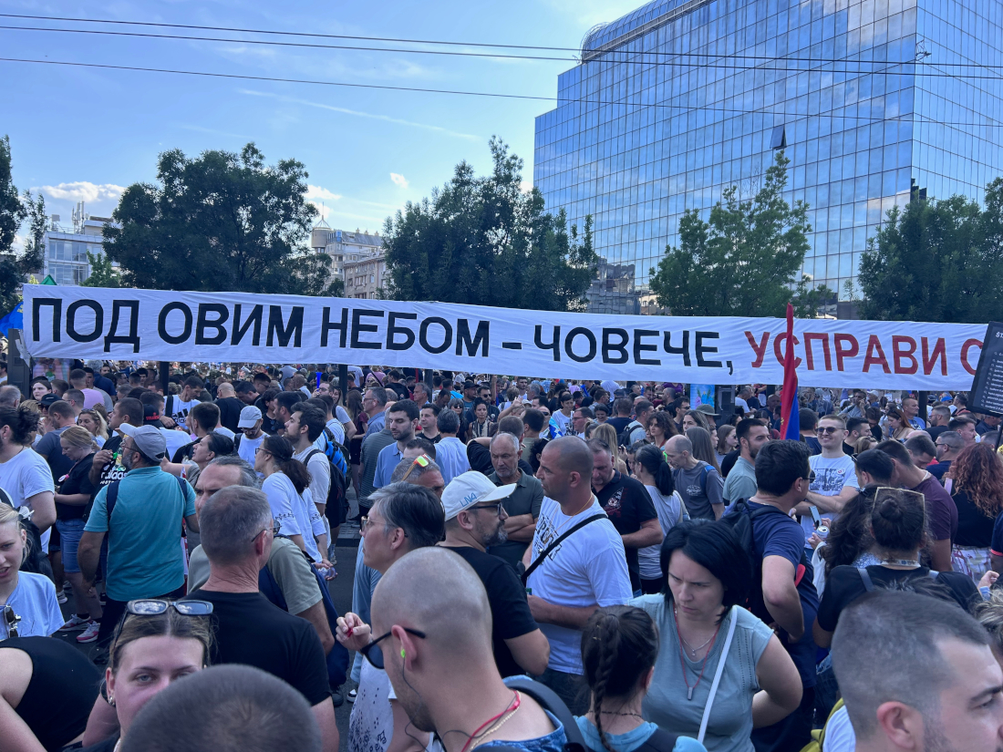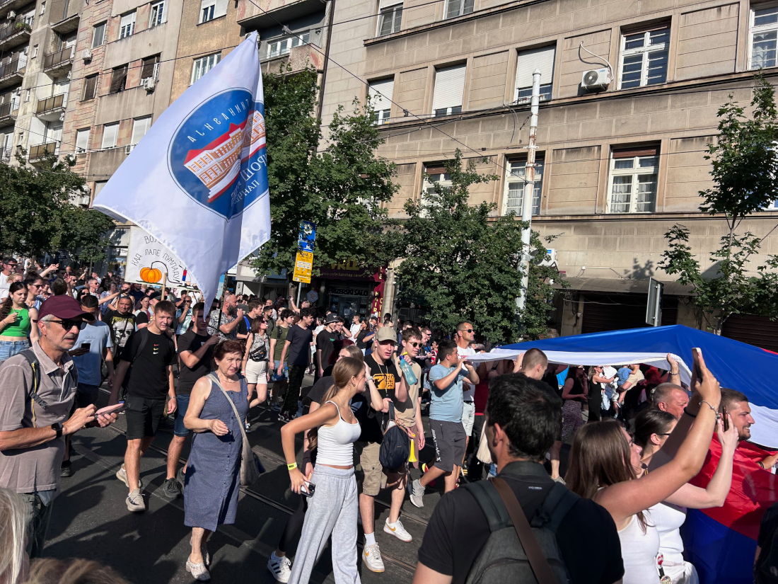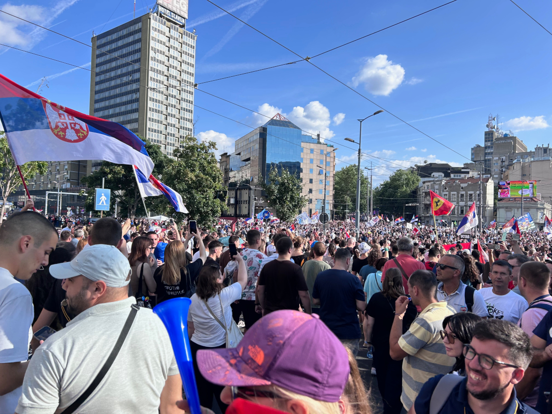 Sabato 28 giugno a Belgrado una nuova protesta concentrata in Trg Slavija, con più di centomila persone per chiedere le dimissioni del presidente Aleksandar Vučić ed elezioni anticipate. Nella serata sono avvenuti scontri che hanno provocato feriti tra manifestanti e poliziotti. Decine gli arresti. Foto di Massimo Moratti
