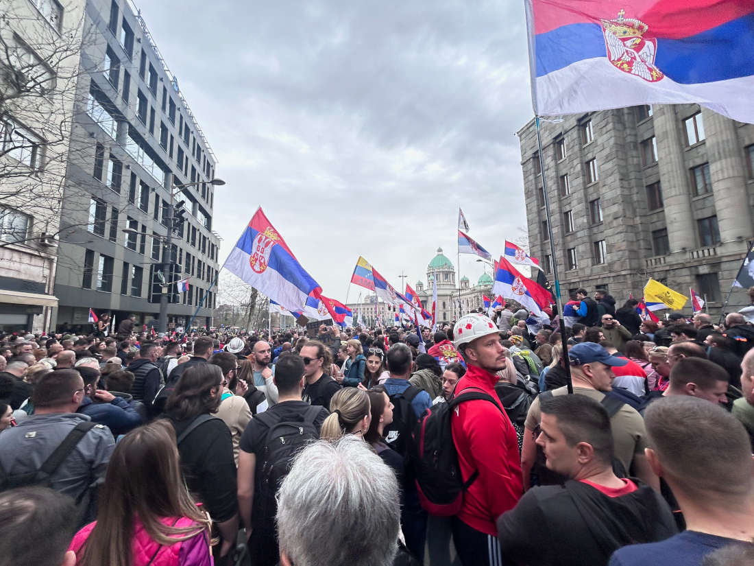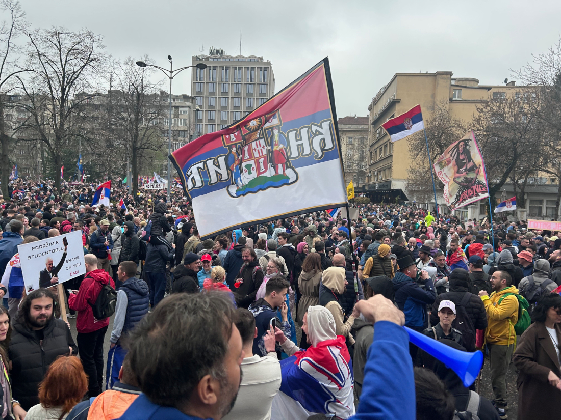 La protesta del 15 marzo, organizzata dai plenum degli studenti di diverse città della Serbia, ha portato nelle piazze e nelle strade di Belgrado centinaia di migliaia di studenti e cittadini. Viene considerata la più grande protesta della storia del paese. Foto di Massimo Moratti