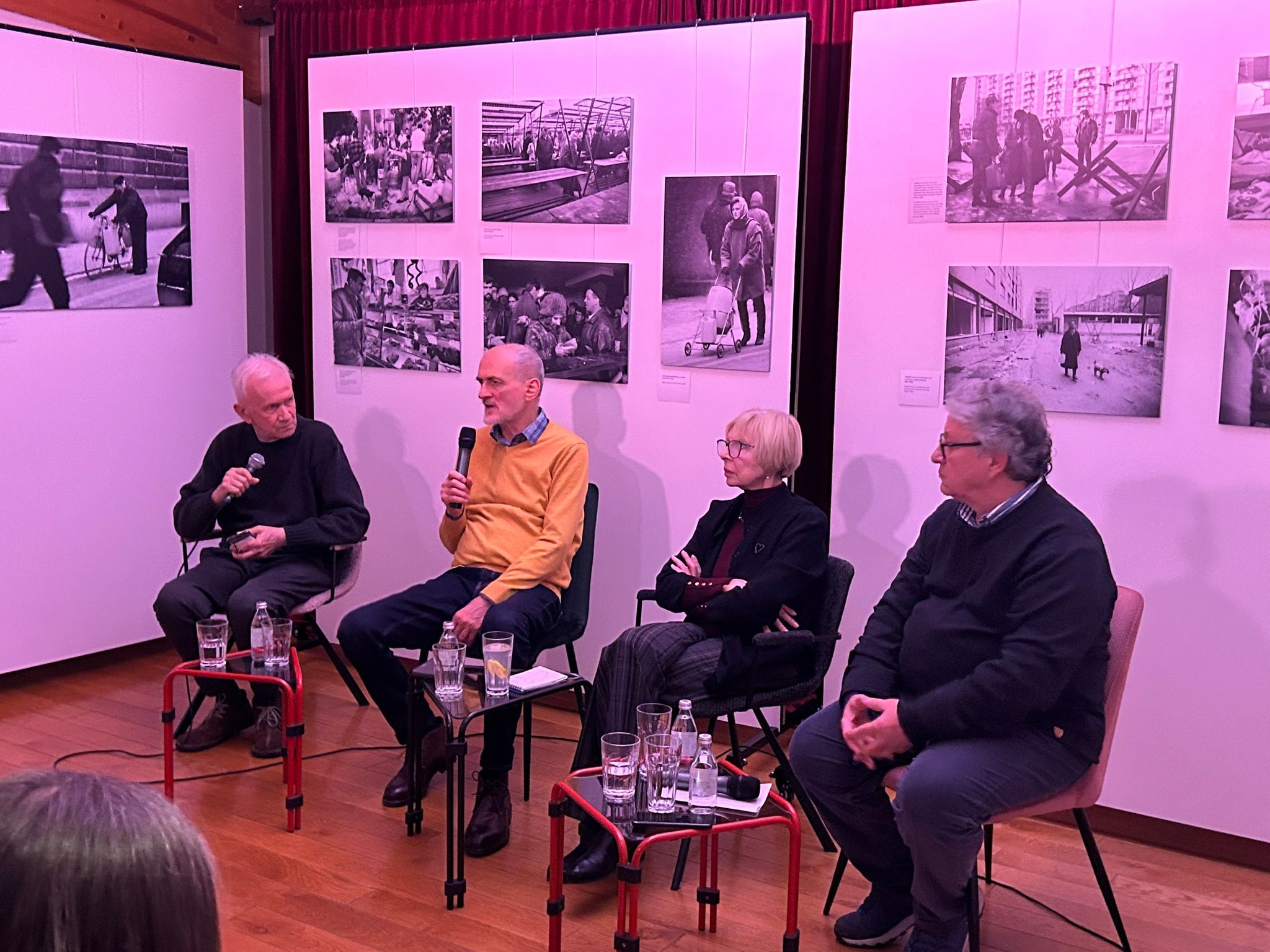 L’evento, organizzato nello stesso spazio della mostra sull’assedio di Sarajevo, ha avuto un’ottima risposta di pubblico e tramite gli stessi protagonisti ha tratteggiato gli aspetti più significativi di questa esperienza. L’evento è stato moderato dal giornalista Slobodan Stupar e sono intervenuti Boro Kontić del Media Centar di Sarajevo, Lula Mikijelj, attivista e leader del gruppo “Živeti u Sarajevu” e Rade Radovanović giornalista di Belgrado che addirittura si recò a Sarajevo durante la guerra.