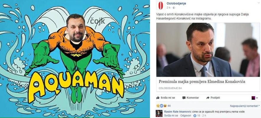 Il premier del cantone di Sarajevo Dino Konaković è uno dei politici le cui dichiarazioni e azioni finiscono spesso nel mirino dei commentatori sui social network. Per via dei ripetuti problemi nell’erogazione dell’acqua potabile che tormentano i cittadini sarajevesi, Konaković è diventato protagonista di numerosi fotomontaggi e post sui social network, ma i commentatori non esitano a farsi beffa anche della sua vita privata, prendendo di mira la sua famiglia.