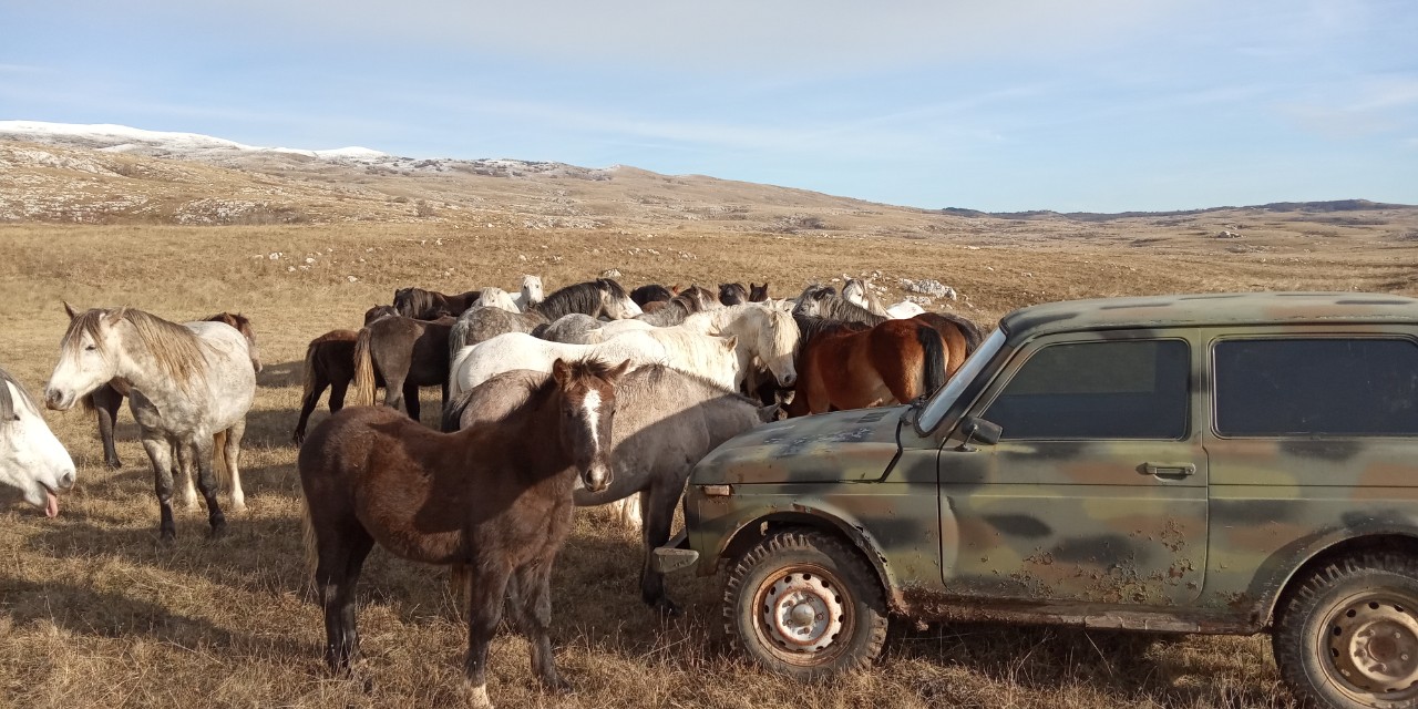 Sembra che i cavalli riconoscano anche il rombo del motore del suo fuoristrada russo, un Lada Niva. Per contro gruppi di entusiasti turisti che si lanciano in improvvisati "safari" impiegano invece ore per incontrarli. Bisogna cercarli, i kalaša, lo si sa. Questi territori carsici dove vivono, tutta l’area del monte Krug e il suo altopiano alle porte di Livno, si estendono per più di un centinaio di chilometri quadrati. Ma Mario dice che, per un motivo a lui sconosciuto, non c’è una volta che non li riesca ad incontrare.