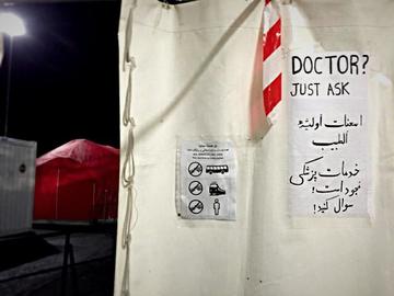 A intervalli irregolari si fermano nel piazzale asfaltato vecchi pullman di linea salvati dalla rottamazione, stracolmi di persone dall’aria stanca. Scendono dalla porta anteriore, di fianco a un cartello posto senza troppi fronzoli sul parabrezza – “transport of migrants” – ed entrano in fila indiana nella prima tenda del campo. Procedono con indolenza in mezzo ai militari e ai loro fucili da assalto a tracolla. Alcune donne anziane hanno bisogno di una sedia a rotelle, dei bambini con la febbre vengono assistiti presso un piccolo container rosso con la scritta della croce rossa internazionale. Dentro ci sono tre dottoressine slovacche appena laureate con un piccolo prontuario di farmaci di prima necessità. Qualche settimana fa una donna al nono mese di gravidanza è stata mandata in urgenza al vicino ospedale dove ha partorito un bambino in perfetta salute. Anche a Dobova, a quanto pare, c’è spazio per una nuova vita.