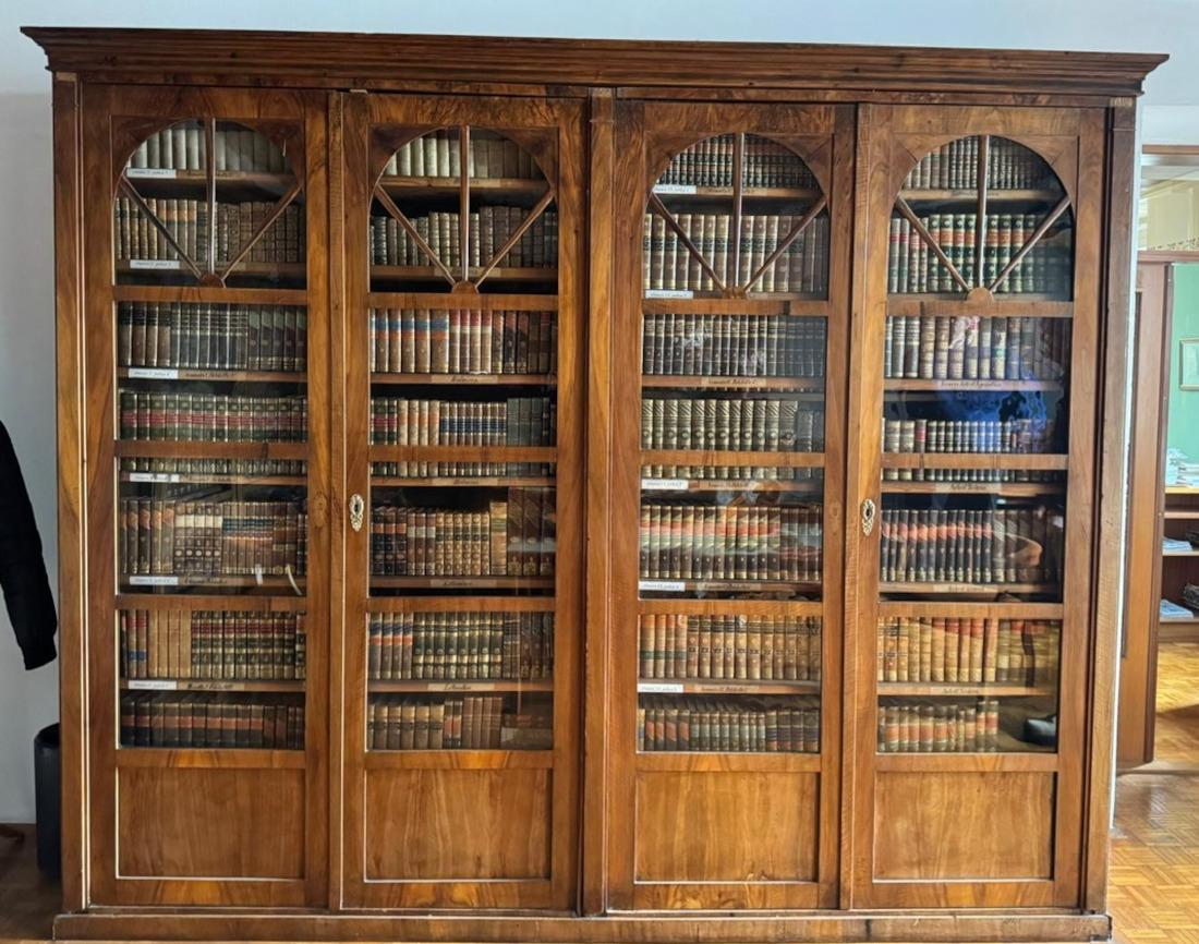 Sorprendente è anche la varietà dei contenuti: cartografia, calligrafia, religione, teatro, diari e impressioni di viaggi, saggi e dibattiti filosofici nonché la straordinaria cura per l’aspetto esteriore quali la ricercatezza della legatura, la stampa e la carta. L’importanza e il valore della raccolta si riflette anche negli armadi accuratamente progettati, in legno di noce, che dopo due secoli sono ancora ben conservati e funzionali.