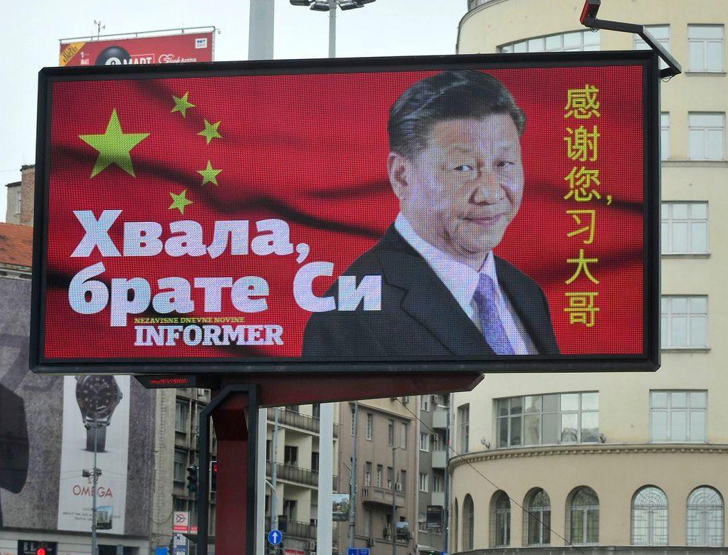 Circa due mesi fa, uno striscione con la scritta "Cinesi e serbi – fratelli per sempre" è stato appeso in un parco pubblico tra il palazzo presidenziale della Serbia e il Parlamento di Belgrado. Il messaggio si è unito a quelli di cartelloni pro-cinesi che proliferavano in città durante il picco della pandemia, dopo che il presidente Aleksandar Vučić ha inscenato una sontuosa cerimonia di benvenuto per l’assistenza medica cinese, in cui ha sbattuto contro l’Unione europea.