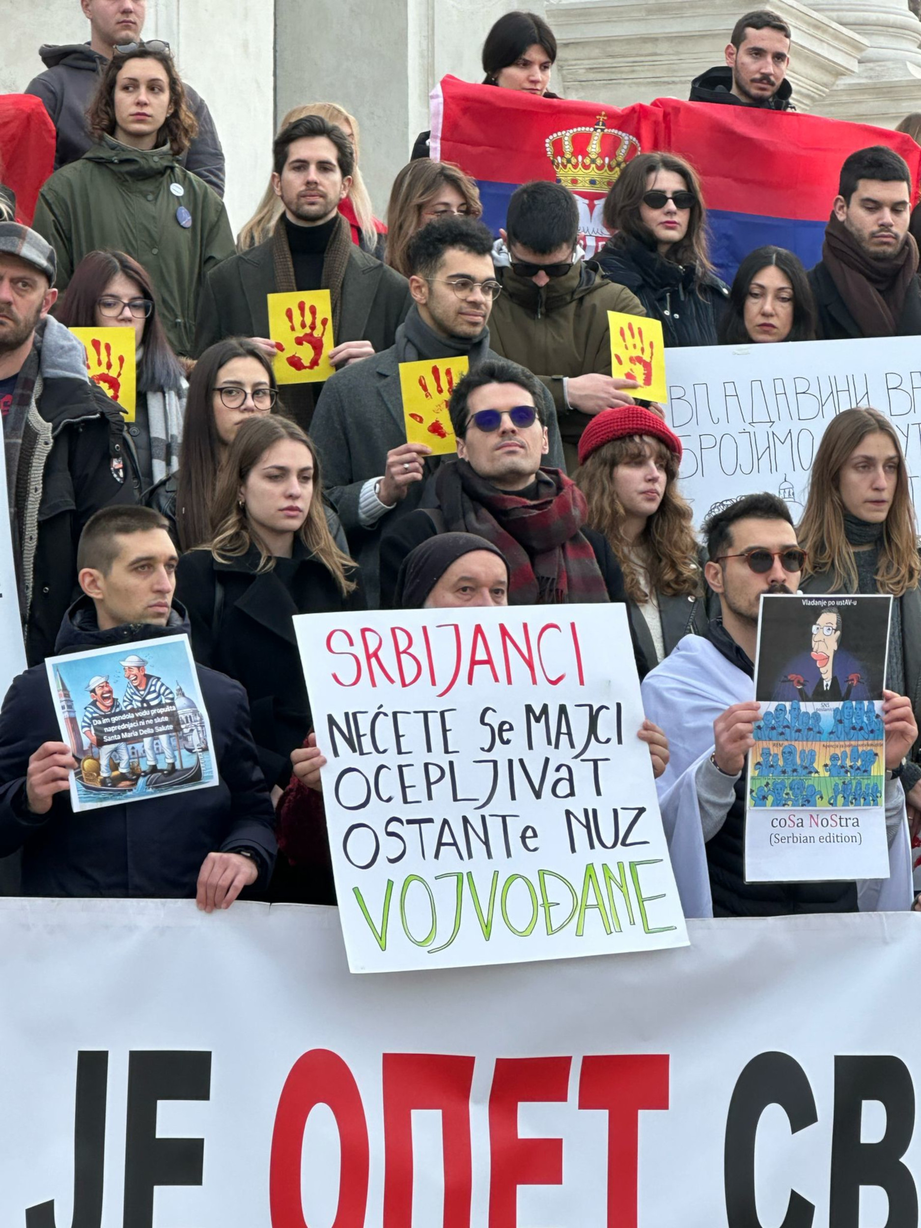 “Ma oggi non pariamo solo di idee”, ha proseguito Srdan, “ma di realtà: dell’ingiustizia che ci ha colpito, delle persone morte nella tragedia di Novi Sad (…) che ci ha dimostrato quanto le vite delle persone siano diventate insignificanti agli occhi di chi dovrebbe tutelarle. Questo dolore deve farci stare uno accanto all’altro, per alzare la voce, perché queste persone non vengano dimenticate, è nostro dovere agire.”