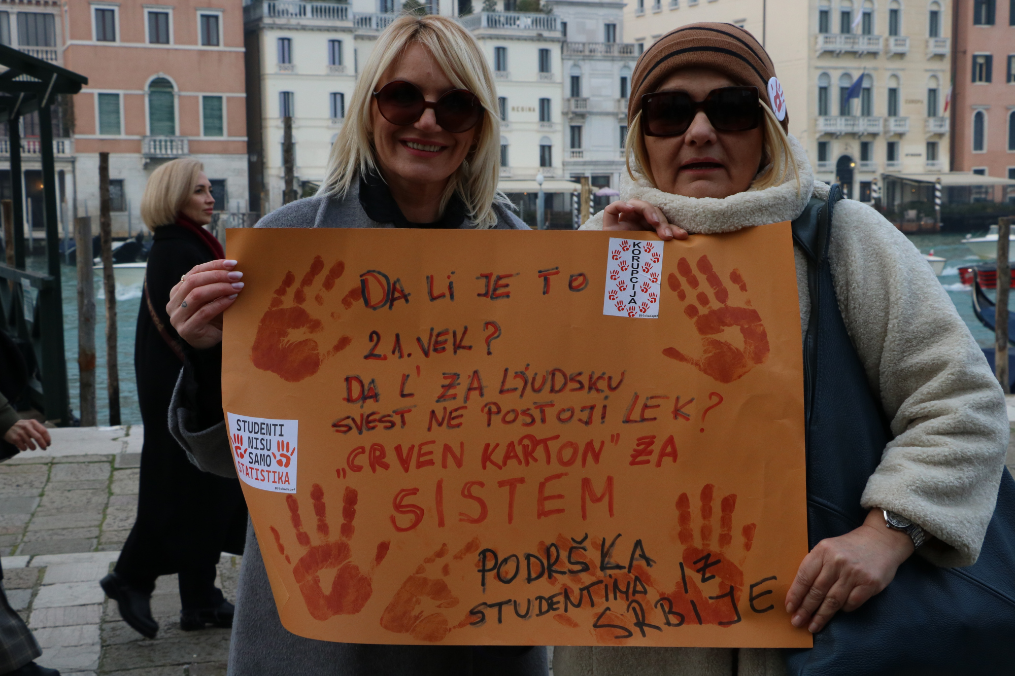 Il 22 febbraio scorso si è svolta a Venezia una manifestazione a sostegno degli studenti che in Serbia protestano da mesi contro la corruzione del governo. Organizzata da studenti serbi che studiano a Venezia, vi hanno partecipato anche studenti e cittadine e cittadini della diaspora di Padova, Milano, Trieste e Bologna. Testo di Aleksandra Ivić, foto di Malena Janković