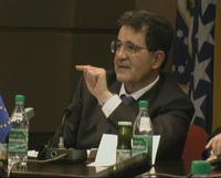 Sappiamo tutti, e ringrazio coloro che prima di me lo hanno sottolineato con vigore, che la storia europea è legata a doppio filo alla storia di questa regione. Non c’è Europa senza la presenza di questi paesi. Per l’Europa, il ventesimo secolo è nato proprio qui, il 28 giugno del 1914, con l’assassinio dell’erede al trono d’Austria. E sempre in questa città il ventesimo secolo si è concluso con la nostra offerta alla Bosnia Erzegovina, e a tutta la regione, di una chiara prospettiva di integrazione nell’Unione Europea, di cui l’appello di oggi è il simbolo più elevato. Si può dire che la Bosnia Erzegovina rappresenti in scala tutta l’Europa, un paese che in dieci anni ha ricapitolato un secolo di storia europea.
