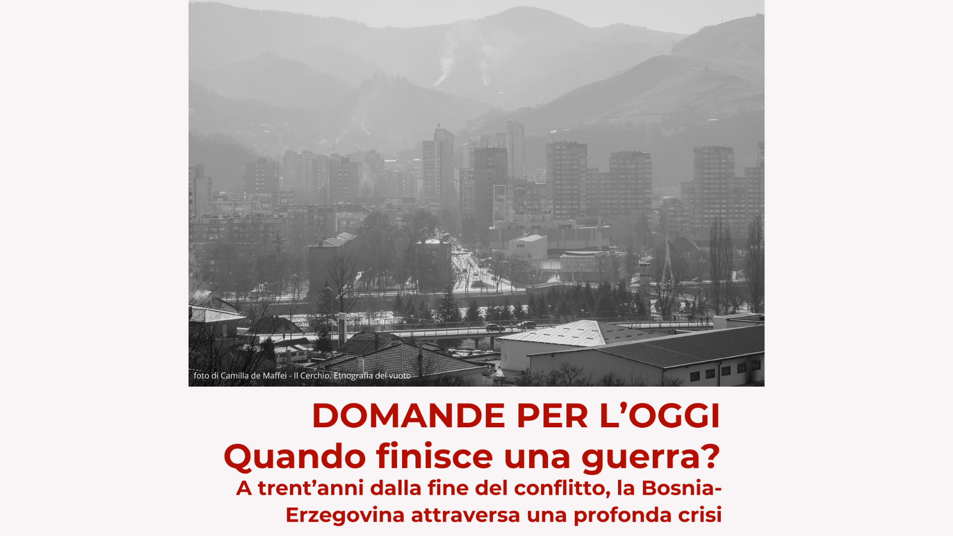 Il 21 novembre 1995 nella base militare di Wright-Patterson, in Ohio fu raggiunto l’Accordo quadro generale per la pace in Bosnia Erzegovina che sancì la fine della guerra in Bosnia Erzegovina durata tre anni e mezzo. A trent’anni da allora, una riflessione sulla Bosnia Erzegovina di oggi e sulle molte dinamiche generate dalla guerra e lasciate irrisolte da quella pace, come l’emigrazione dei cittadini verso l’UE, l’arrivo di migranti che non si stabiliscono nel Paese, il lungo percorso di adesione all’Europa e le continue tensioni politiche.