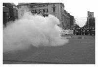 Dopo una ventina di minuti, circa 25 contromanifestanti neo-nazisti hanno cominciato a gridare "Coltelli, cavi elettrici, Srebrenica", "La Serbia ai Serbi", facendo gesti "Heil Hitler" e insultandoci. Qualcuno ha lanciato un lacrimogeno nel centro del nostro cerchio, che è esploso spargendo il gas verso una parte del nostro cerchio. Mentre le persone sull’altra parte del cerchio sono rimaste al loro posto, quelle colpite dal gas sono state costrette a scappare verso il teatro, seguite dai contro-manifestanti. Dopo una decina di minuti, sono arrivate speciali forze di polizia per proteggerci.