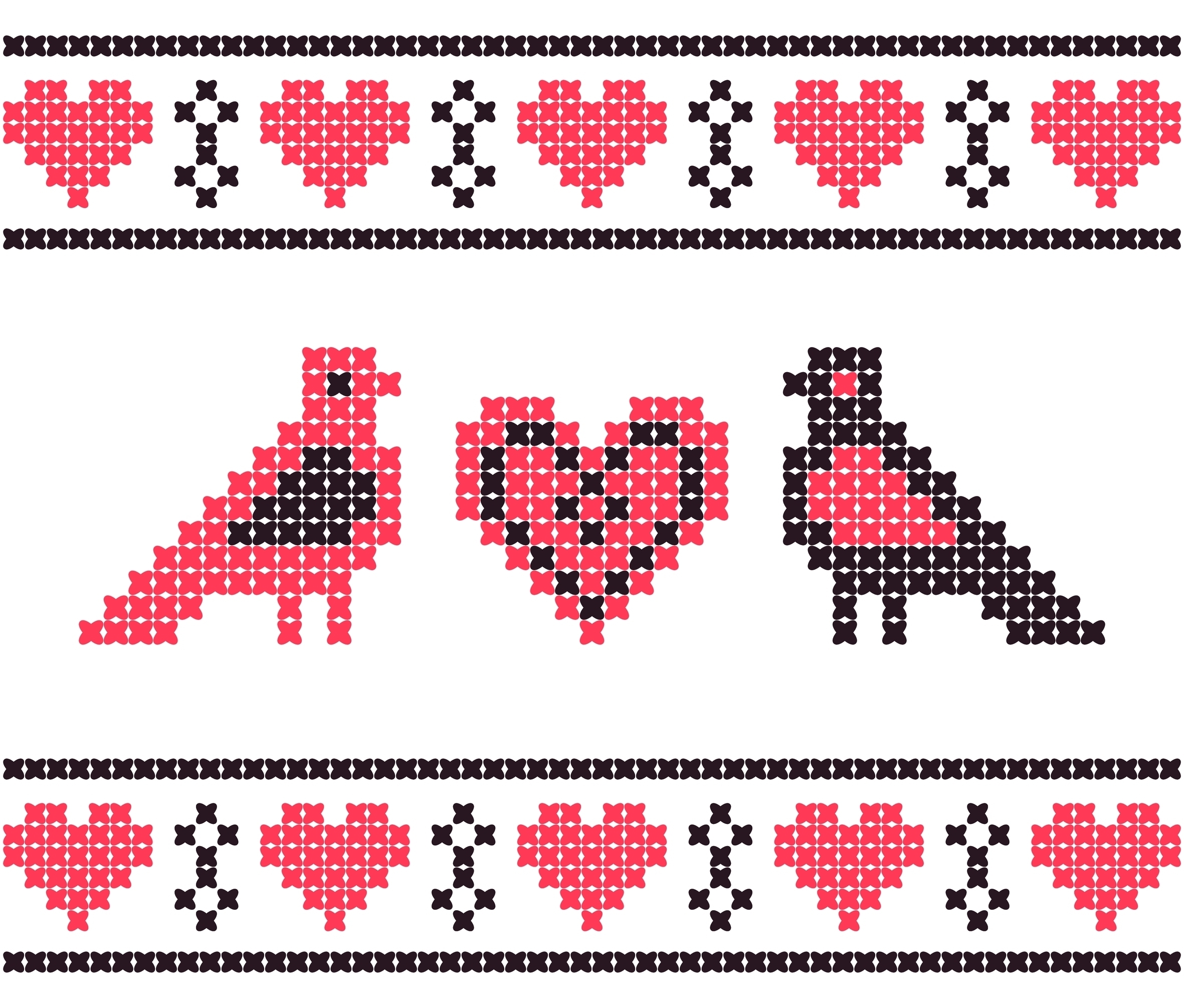 Dragobete, tradizione rumena di San Valentino. Schema a punto croce con cuori e coppia di uccellini © Sudowoodo / Shutterstock