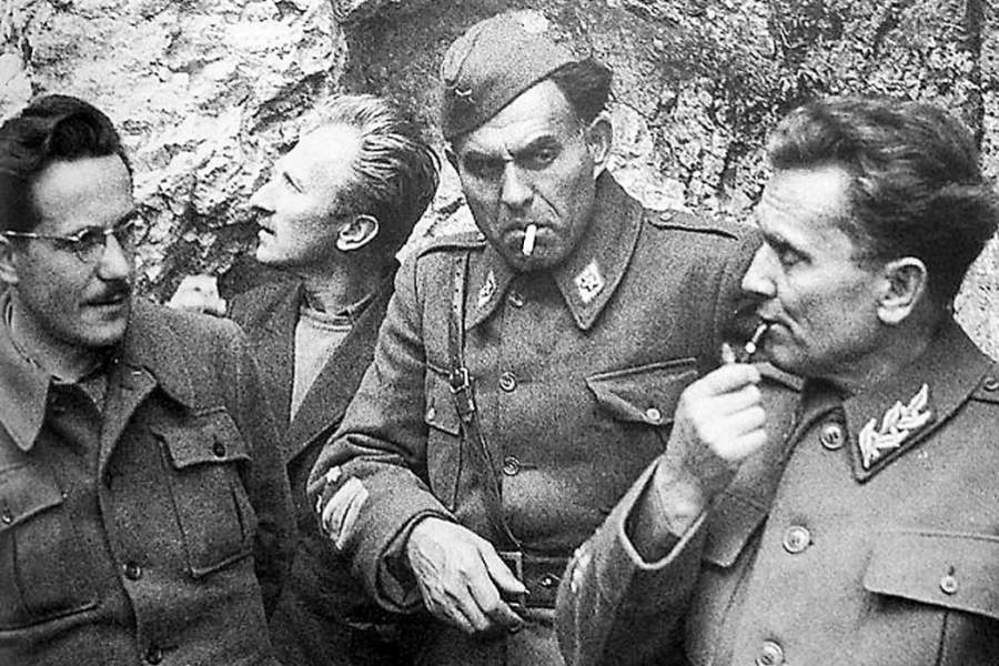 Edvard Kardelj, a sinistra, e Jozip Broz Tito, a destra, durante la Seconda guerra mondiale