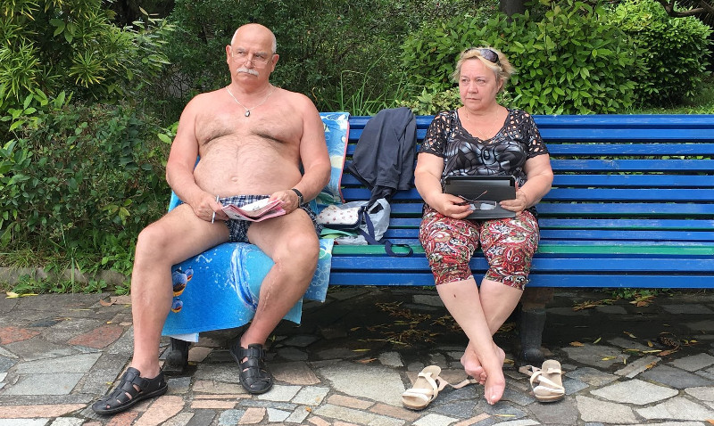 “Ci piace qui, come potrebbe non piacerci? Il sole, il mare, la natura. E’ salutare”, racconta questa donna moscovita di sessant’anni, respirando a pieni polmoni l’aria che profuma di salsedine. Seduto al suo fianco Pyotr, il marito, annuisce compilando parole crociate.
