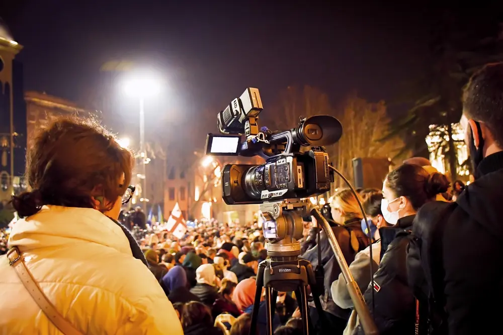 Troupe televisiva filma le proteste  Tbilisi, Georgia © EvaL Miko/Shutterstock