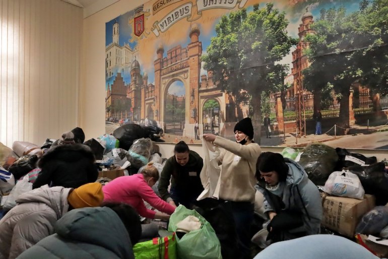 "Persone da tutta l’Ucraina chiamano per dirci di cosa hanno bisogno", racconta Ruslan, 51 anni, seduto al computer con un foglio di calcolo e fogli di carta per prendere appunti. "Oggi stiamo inviando medicine a Kiev e cibo a Charkiv. Gli autisti rischiano la vita quando si avvicinano ai combattimenti, ma si tratta di rifornire le zone circondate dall’esercito russo in un momento in cui molti beni essenziali stanno finendo. "Ciò di cui abbiamo più bisogno sono giubbotti antiproiettile ed elmetti. Ruslan si augura anche che venga implementata una no-fly zone, cosa che la NATO si rifiuta di fare, temendo che questo porterebbe ad una internazionalizzazione del conflitto.