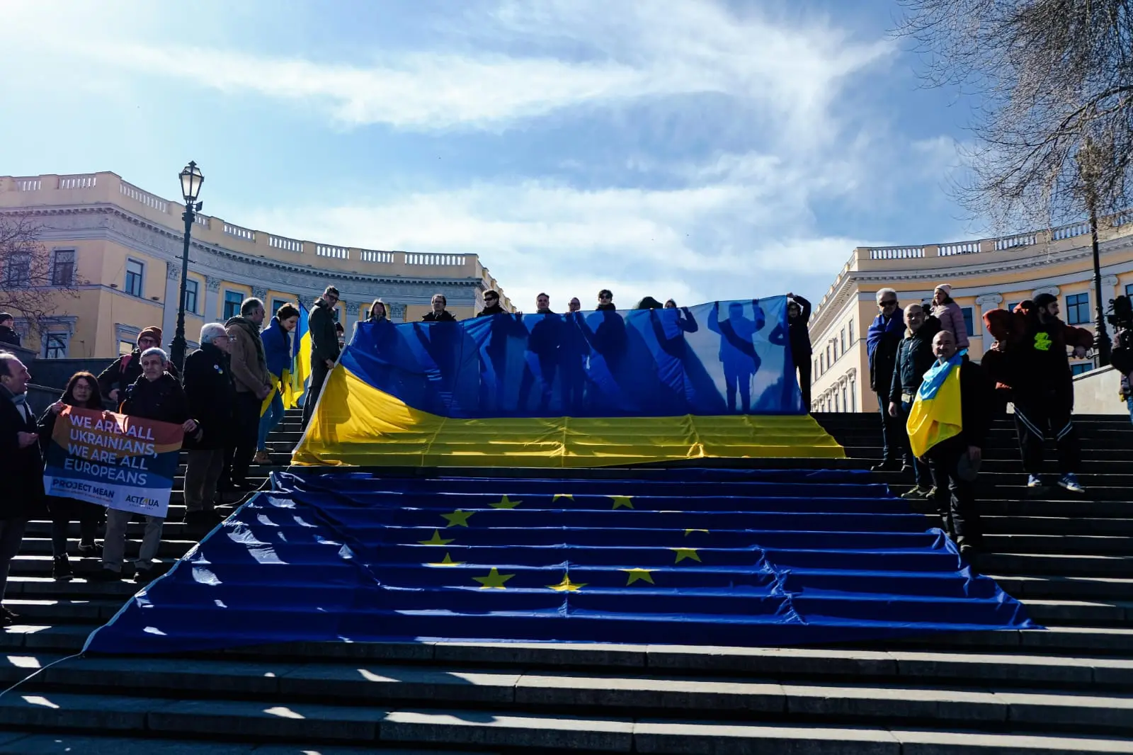 Odessa, Ucraina. Bandiera dell'ucraina gigante sulla scalinata Potemkin © Foto P. Bergamaschi