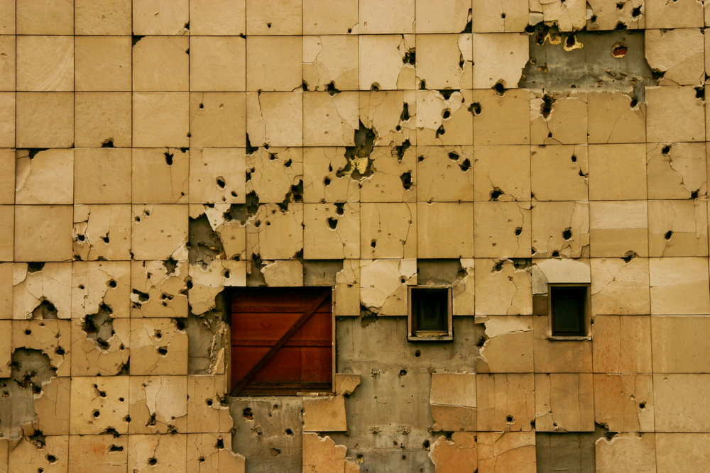 Muro crivellato di colpi di artiglieria, Bosnia Erzegovina © yuzu2020/Shutterstock