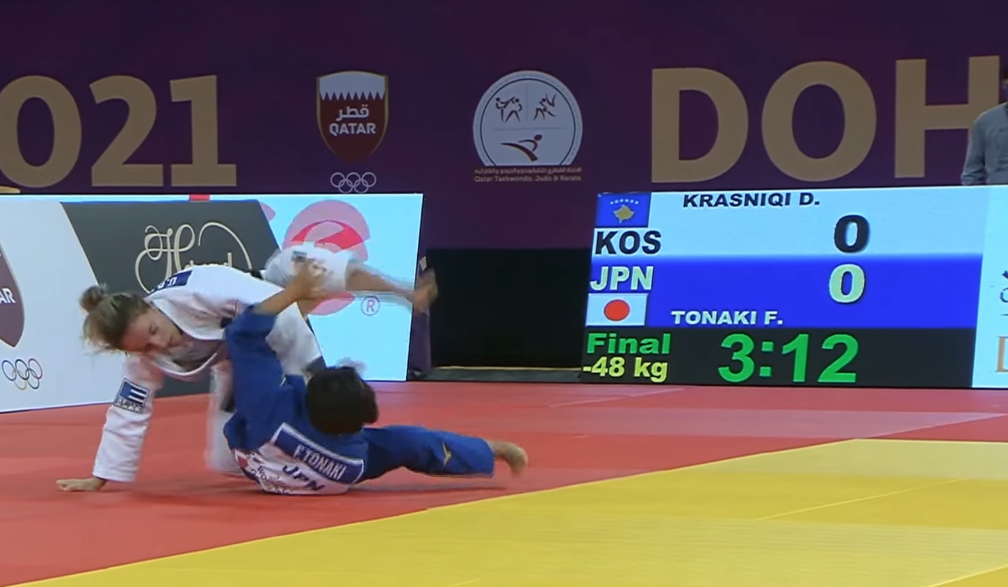 Una fase della finale olimpica a Tokyo tra Distria Krasniqi e Funa Tonaki - screenshot da Youtube