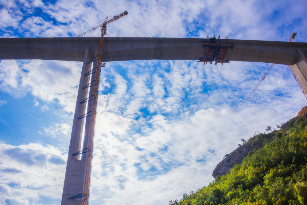 La costruzione di un viadotto del tratto autostradale Bar-Boljare, in Montenegro, infrastruttura finanziata da capitali cinesi (@ yosmoes815/Shutterstock)