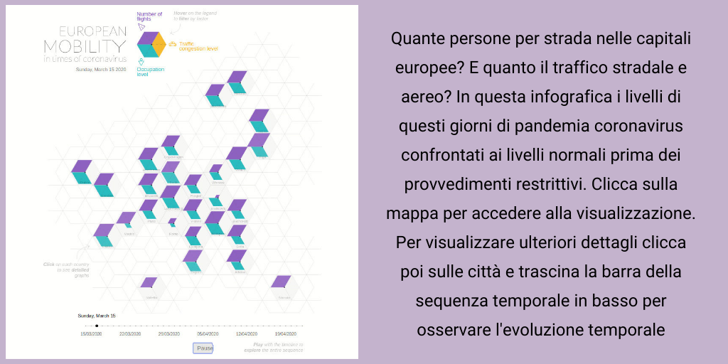 Civio, nostro partner del consorzio EDJNet, ha effettuato un studio su mobilità pedonale, traffico stradale e traffico aereo nelle varie capitali europee. Giorno per giorno una serie di grafici ci raccontano chiusure e aperture durante la pandemia Covid-19