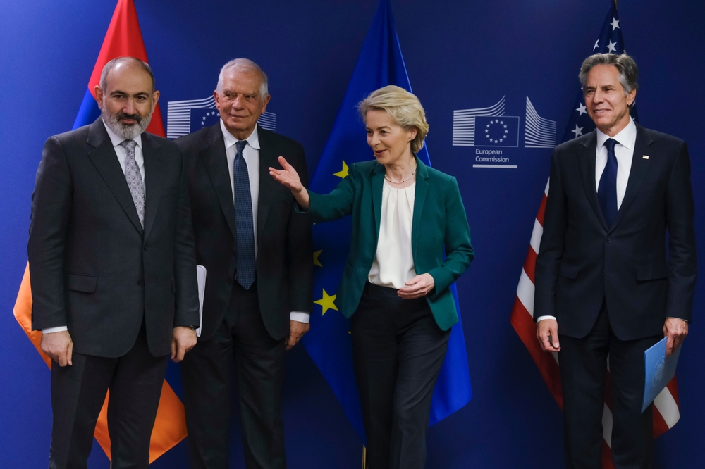 In un incontro di importanza storica, ad alto livello a Bruxelles il 5 aprile 2024, Pashinyan si è confrontato con la presidente della Commissione europea Ursula von der Leyen, il capo della politica estera dell’UE Josep Borrell e il segretario di Stato americano Antony Blinken per discutere del futuro strategico dell’Armenia, sottolineando una decisa e nuova vocazione della nazione verso l’Europa e verso legami transatlantici.