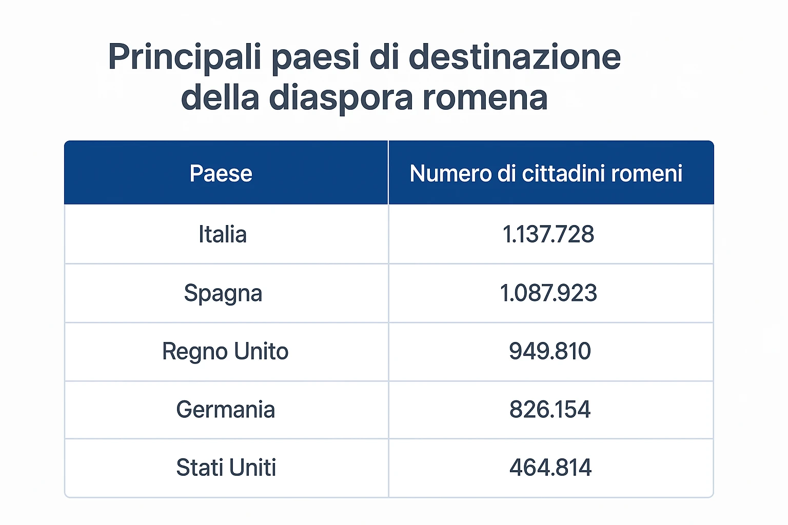 Circa 5,7 milioni di cittadini romeni vivono al di fuori dei confini nazionali . Le dimensioni di questa comunità conferiscono agli emigrati romeni un peso elettorale significativo, capace di influenzare gli esiti delle consultazioni politiche nel paese.