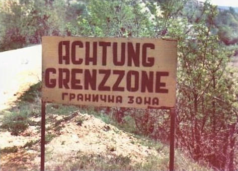 Al confine, la fine del territorio bulgaro era contrassegnata da cartelli in lingua tedesca: "Achtung Grenzzone!"