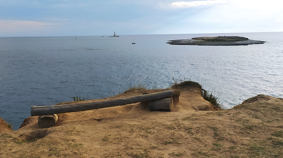 La Chiesa di San Lorenzo a destra, il campanile a sinistra; da secoli anche punto cospicuo per i naviganti che entrano o escono dal Golfo del Quarnero. Qualche konoba, un forno, un paio di alimentari e altrettanti bazar. Poco oltre finisce la strada asfaltata e, per una bianca, si entra nel Parco Kamenjak. Istituito nel 1996, ha un potenziale enorme, in termini paesaggistici e naturalistici. Scrivo un potenziale perché molto va sprecato con il barbaro ingresso a pagamento di auto e moto che, anche nei giorni feriali di settembre, trasformano la strada principale in un polverosissimo, rumoroso, trafficato percorso rally. Tanto che pedalando mi chiedo se volend