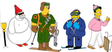Così, ecco la parodia della celebre serie di cartoni animati americana, i Simpson, opportunamente rinominati The Pimpsons, sottotitolo “Noi ci stiamo fregando il Kosovo, voi pagate. Anche qua coltiviamo e vendiamo banane”.