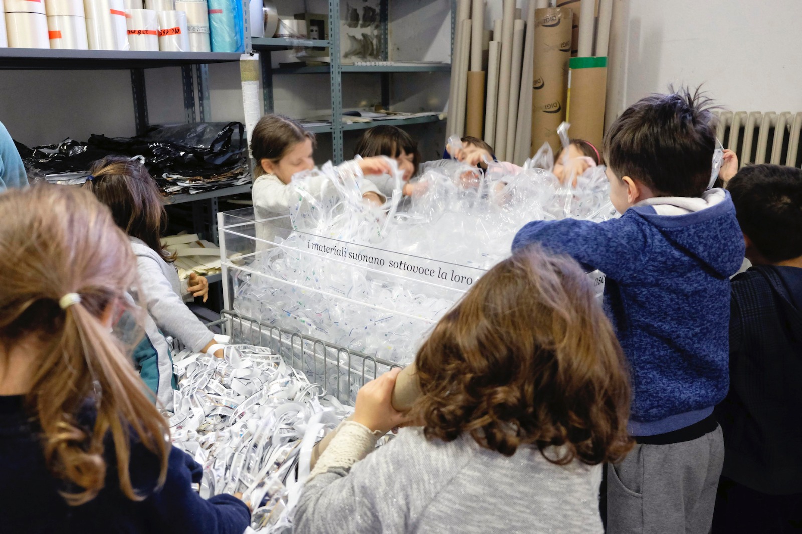 Bambini esplorano i materiali presso il Centro di riciclaggio creativo Remida - © Remida