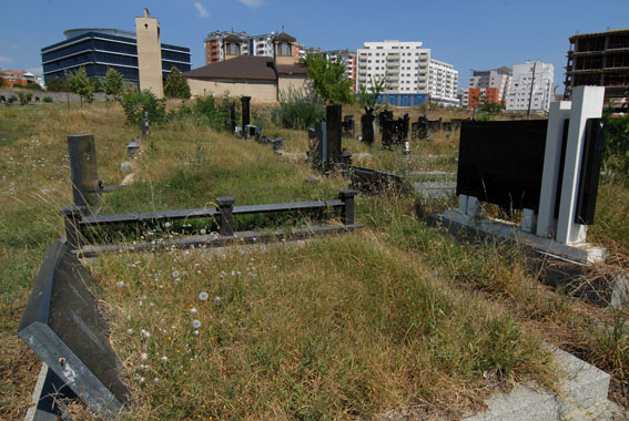 L’attività costruttiva ha allargato i confini di Pristina, estendendo la città in tutte le direzioni. I nuovi palazzi ed edifici amministrativi sono arrivati a lambire l’ormai abbandonato cimitero ortodosso, a pochi metri dalla tangenziale che porta a Mitrovica. Il cimitero (utilizzato anche dalla piccola comunità cattolica albanese si Pristina) è aperto ai visitatori: nessuno però si aggira tra le tombe, che nell’incuria generale sono state ricoperte da erbacce e vegetazione.