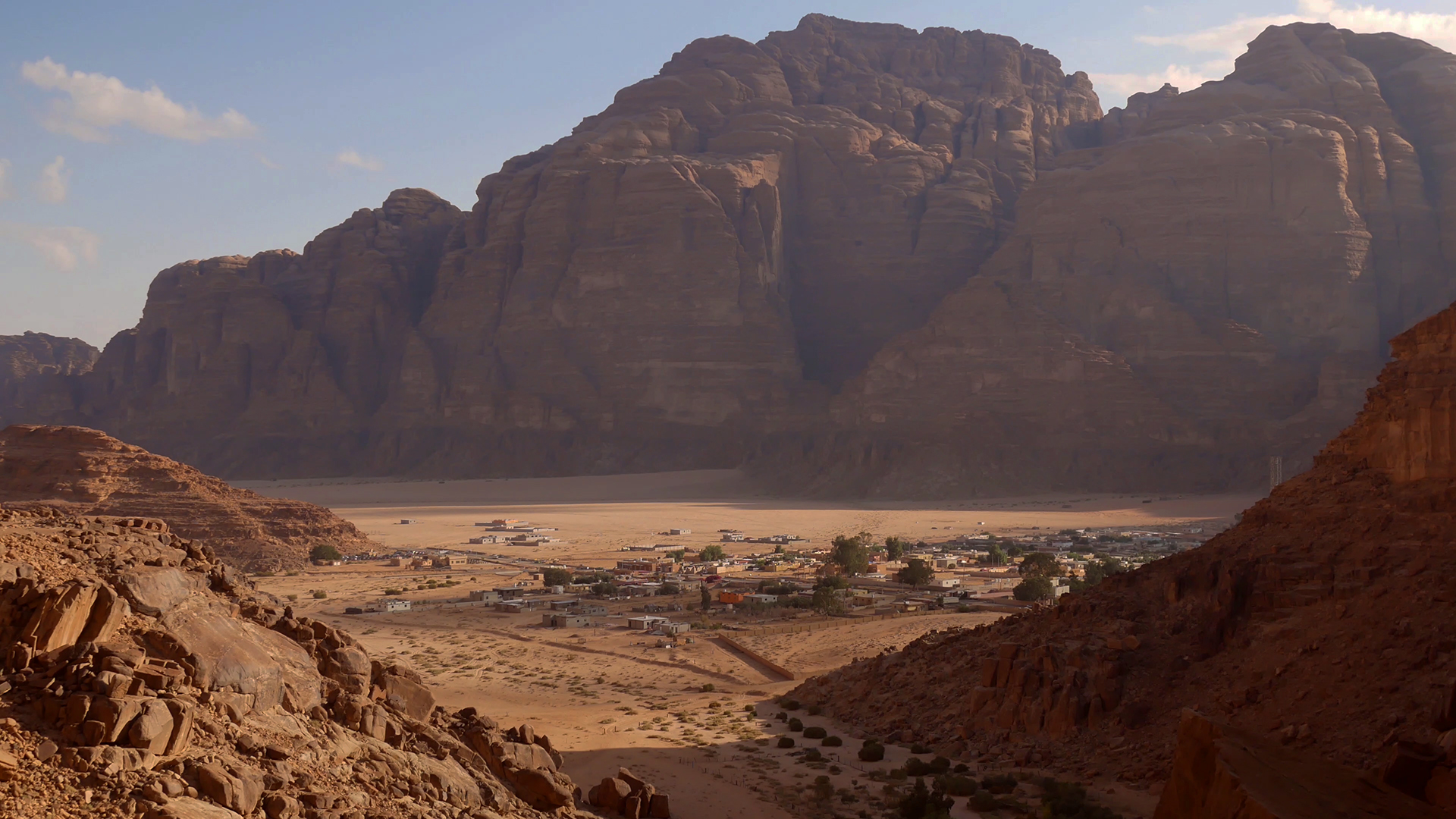 Giù a sud nel deserto del Wadi Rum, lontano dalle città sovraffollate, le falde acquifere nascoste sotto le basse montagne rocciose di arenaria salvano la situazione. Il problema è che questa "acqua Disi" è una risorsa fossile non rinnovabile, un profetico "oro blu", una delle falde acquifere più preziose della regione, che ha però una durata di vita limitata.